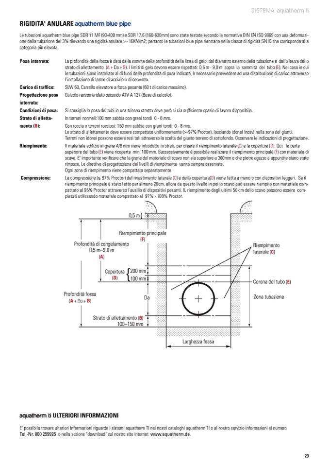 le tubazioni siano installate al di fuori delle profondità di posa indicate, è necessario provvedere ad una distribuzione di carico attraverso