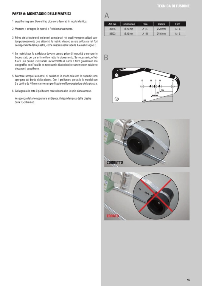 5. Montare sempre le matrici di saldatura in modo tale che le superfici non