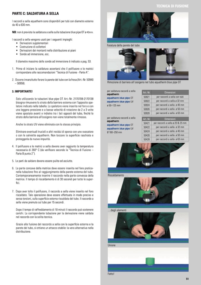 NB: non è prevista la saldatura a sella sulla tubazione blue pipe OT ø 40mm.