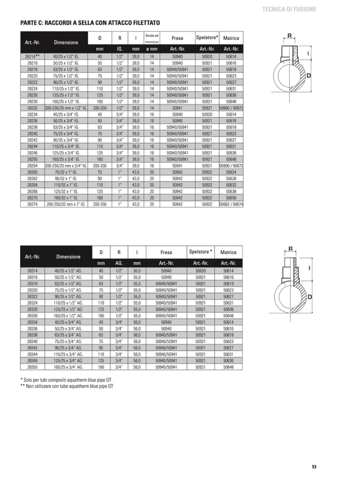 * Solo per tubi compositi aquatherm blue pipe OT