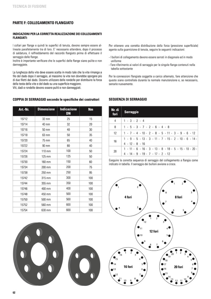 - Fare riferimento ai valori di serraggio per le singole flange contenuti nella