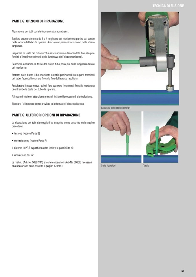 La riparazione dei tubi danneggiati va eseguita come descritto nelle pagine