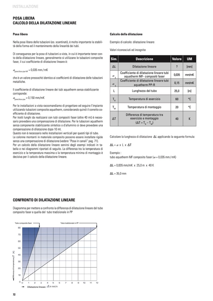 Il coefficiente di dilatazione lineare dei tubi aquatherm senza stabilizzante