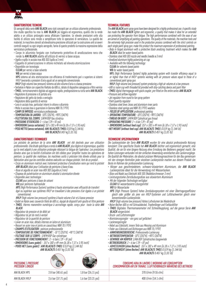 The ANI BLACK paint spray guns have been designed for a highly professional use. A specific study
