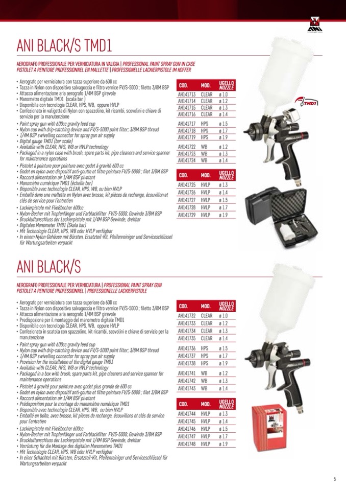 • Disponibile con tecnologia CLEAR, HPS, WB, oppure HVLP