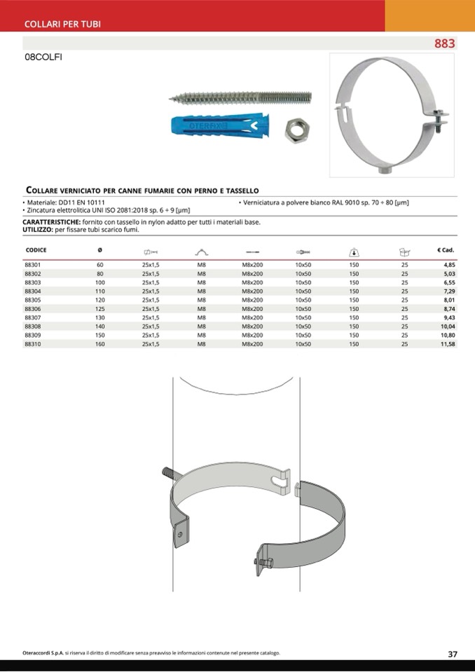 COLLARE VERNICIATO PER CANNE FUMARIE CON PERNO E TASSELLO