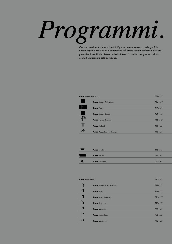 grammi abbinabili alle diverse collezioni Axor. Prodotti di design che portano