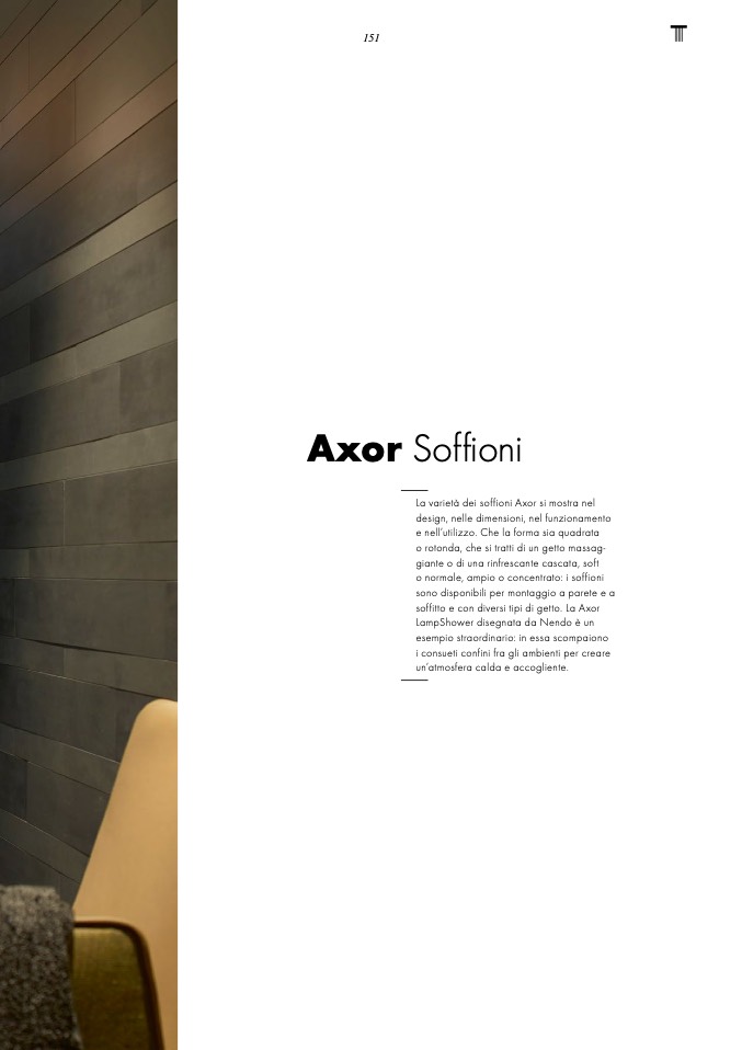 soffitto e con diversi tipi di getto. La Axor