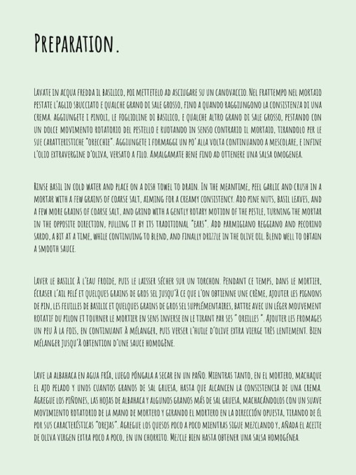 mortar with a few grains of coarse salt, aiming for a creamy consistency. Add pine nuts, basil leaves, and