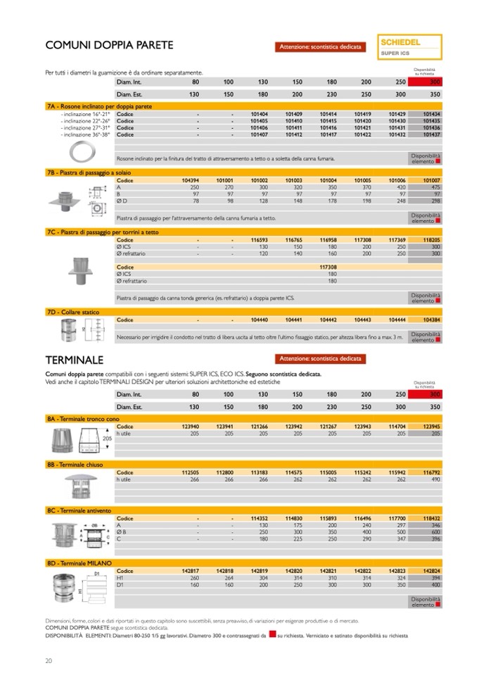 DISPONIBILITÀ ELEMENTI: Diametri 80-250 1/5 gg lavorativi. Diametro 300 e contrassegnati da
