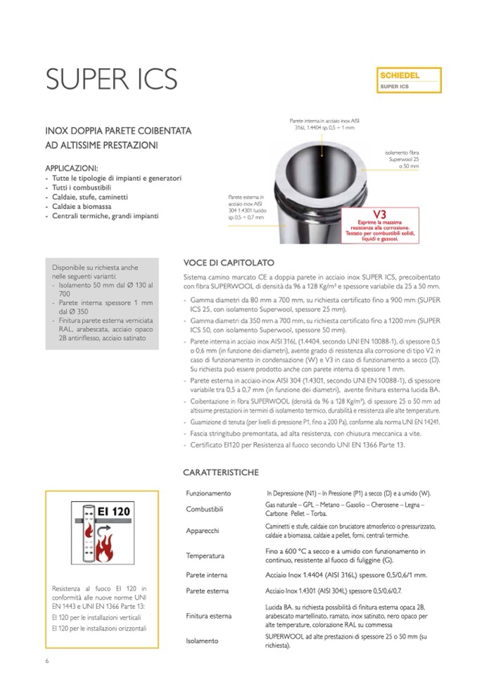 Sistema camino marcato CE a doppia parete in acciaio inox SUPER ICS, precoibentato