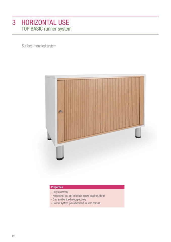 - Runner system (pre-lubricated) in solid colours