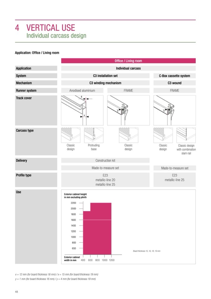 y = 1 mm (for board thickness 16 mm) / y = 4 mm (for board thickness 19 mm)