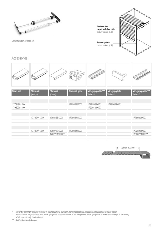 ** From a cabinet height of 1300 mm, a mid-grip profile is recommended. In the configurator, a mid-grip profile is added from a height of 1301 mm,