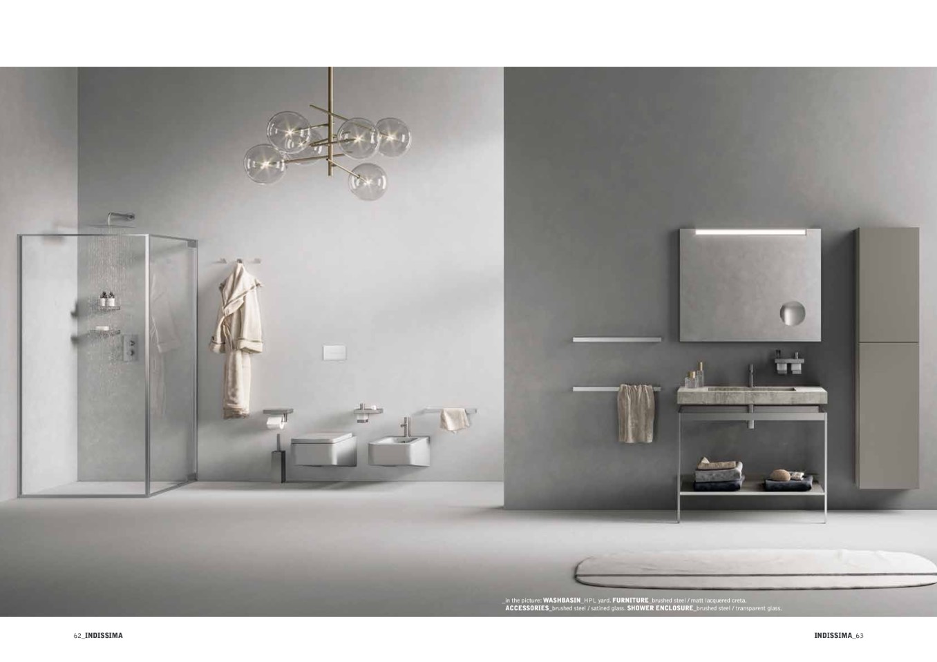 ACCESSORIES_brushed steel / satined glass. SHOWER ENCLOSURE_brushed steel / transparent glass.