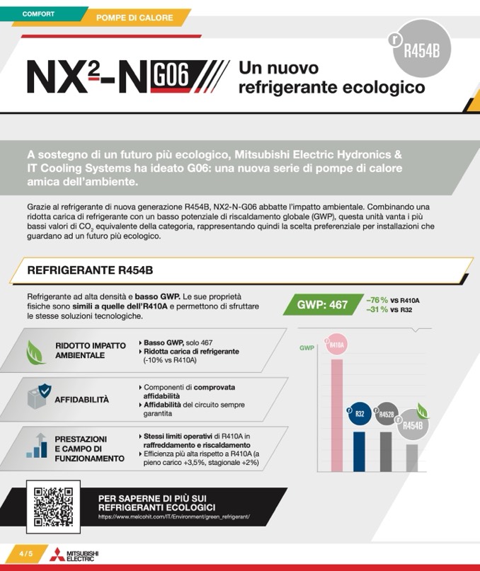 Grazie al refrigerante di nuova generazione R454B, NX2-N-G06 abbatte l’impatto ambientale. Combinando una