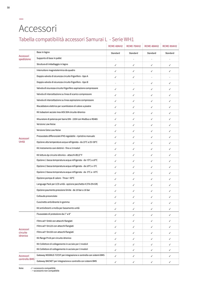 ✓ = accessorio compatibile