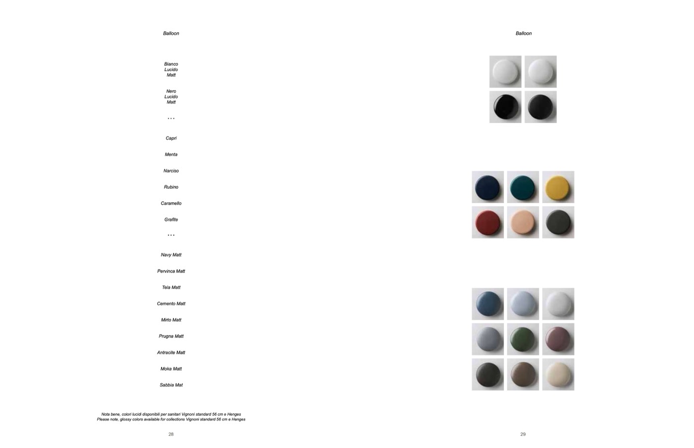 Please note, glossy colors available for collections Vignoni standard 56 cm e Henges