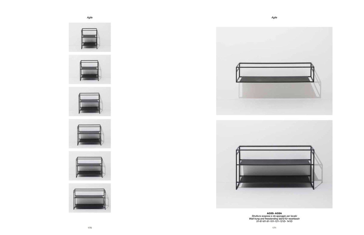 Struttura sospesa e da appoggio per lavabi