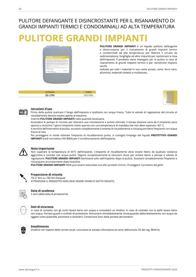 PULITORE GRANDI IMPIANTI è un liquido pulitore defangante