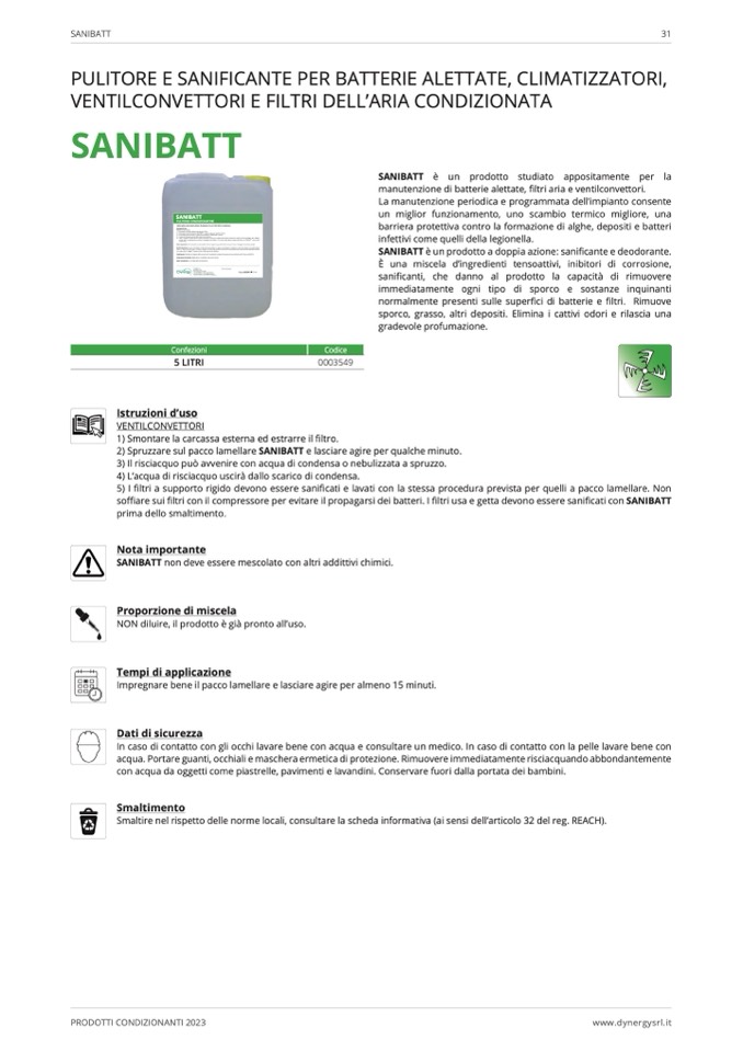 SANIBATT è un prodotto a doppia azione: sanificante e deodorante.