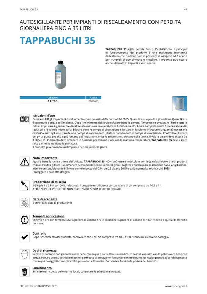 Agitare bene la tanica prima dell’utilizzo. TAPPABUCHI 35 NON pu