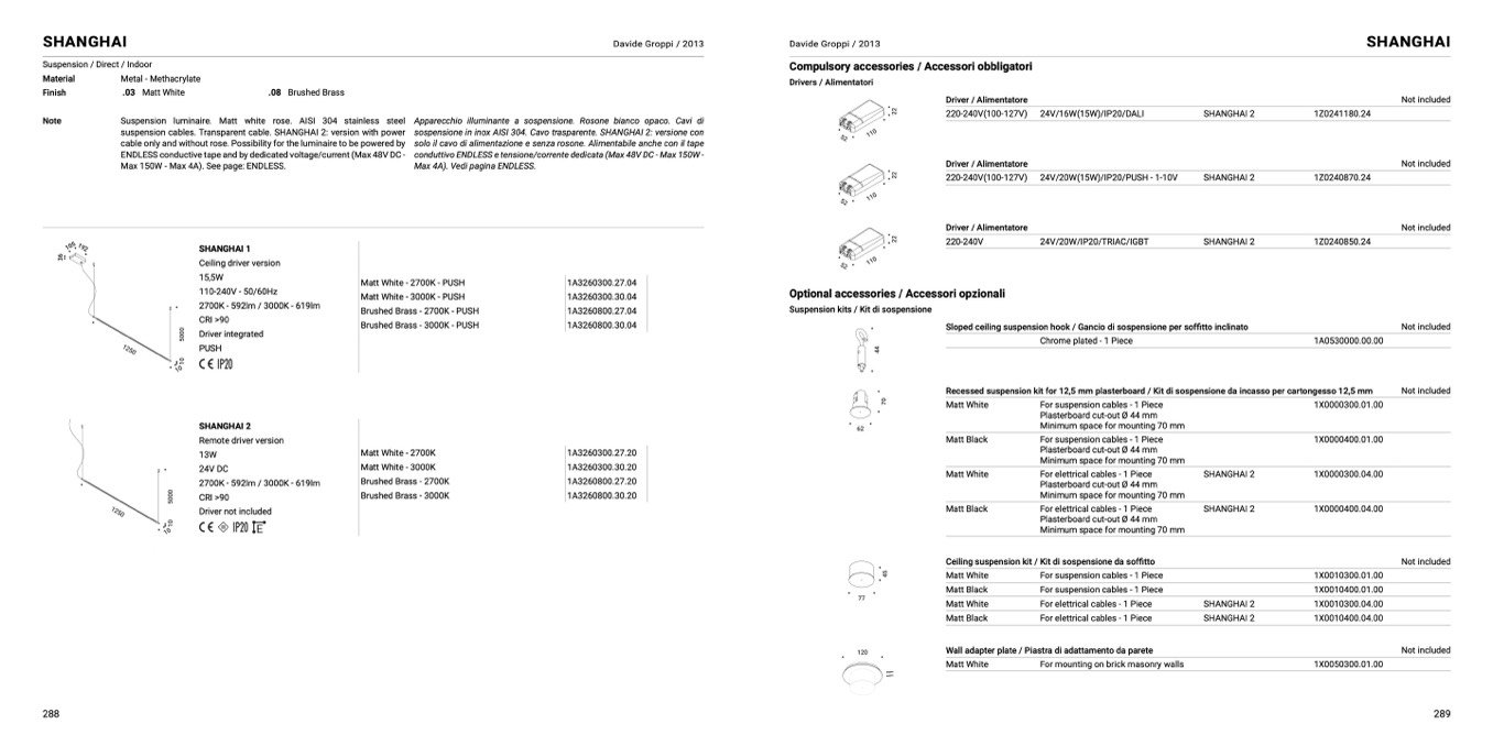 cable only and without rose. Possibility for the luminaire to be powered by
