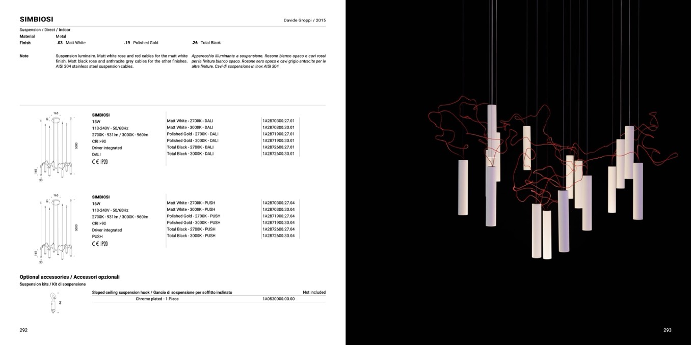 per la finitura bianco opaco. Rosone nero opaco e cavi grigio antracite per le