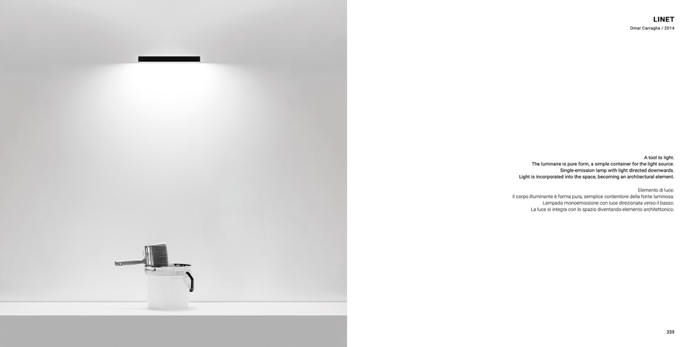 Il corpo illuminante è forma pura, semplice contenitore della fonte luminosa.