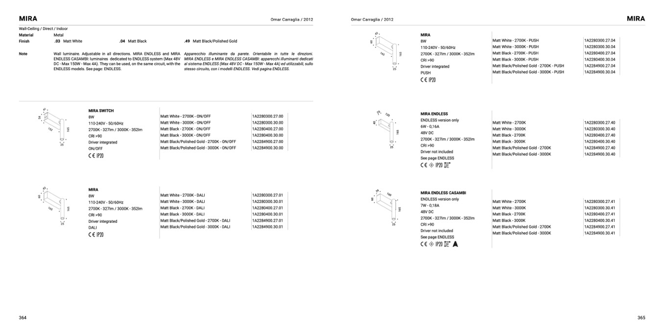Wall luminaire. Adjustable in all directions. MIRA ENDLESS and MIRA
