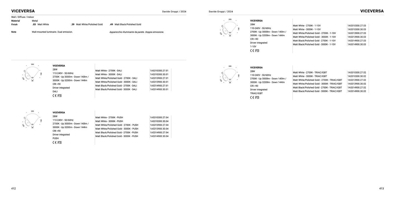 Apparecchio illuminante da parete. Doppia emissione.