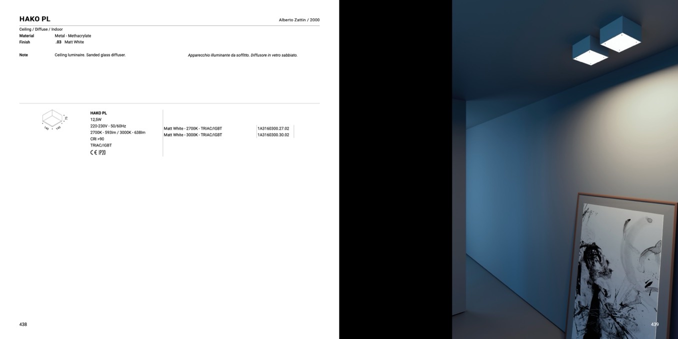 Apparecchio illuminante da soffitto. Diffusore in vetro sabbiato.