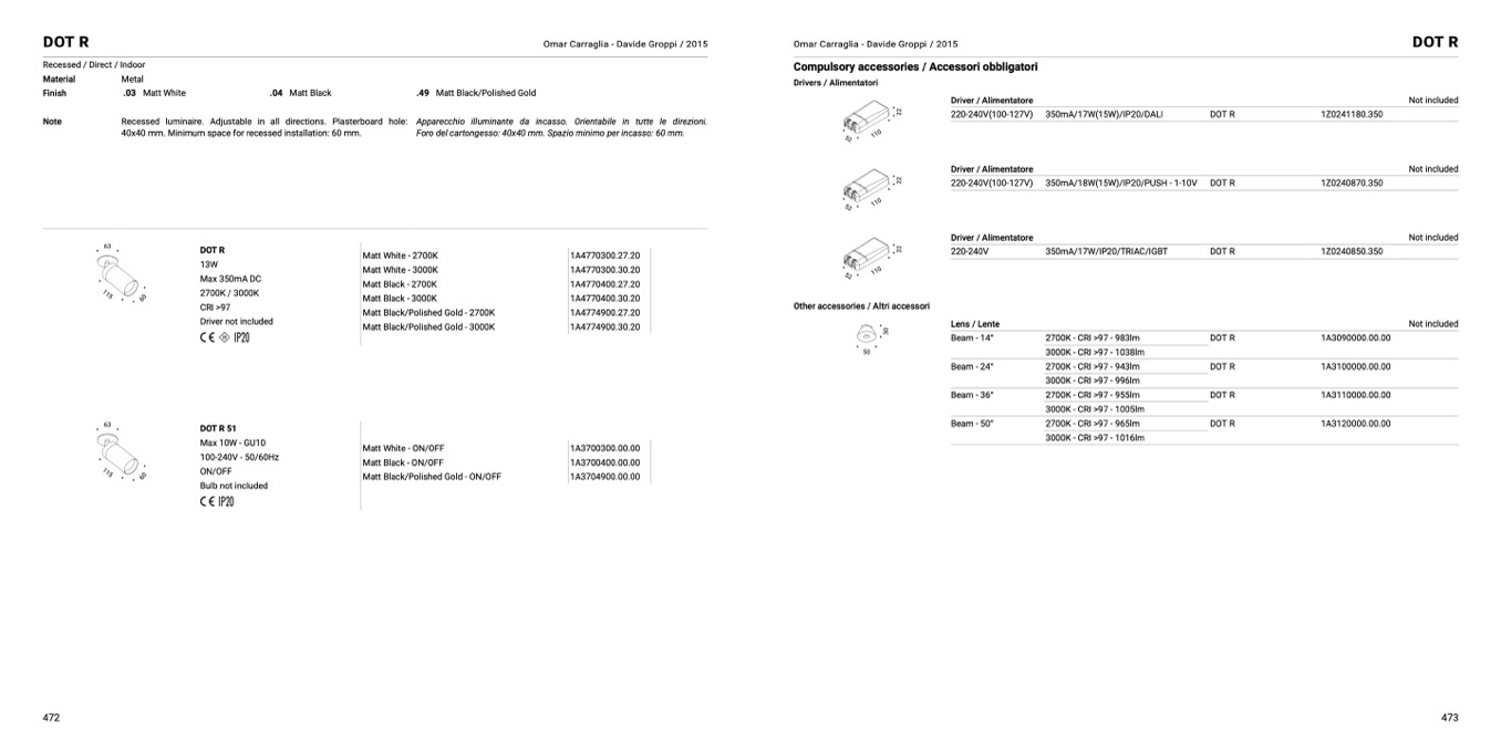 Recessed luminaire. Adjustable in all directions. Plasterboard hole: Apparecchio illuminante da incasso. Orientabile in tutte le direzioni.