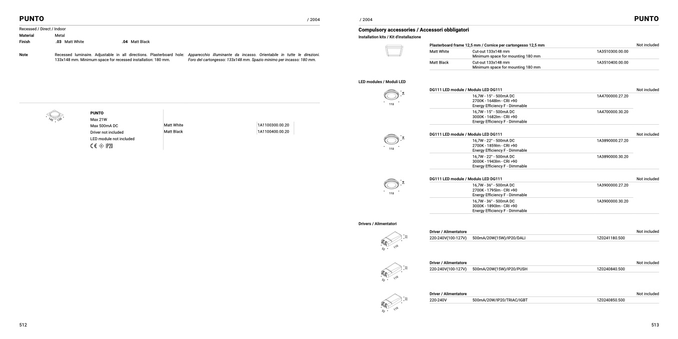 Recessed luminaire. Adjustable in all directions. Plasterboard hole: Apparecchio illuminante da incasso. Orientabile in tutte le direzioni.