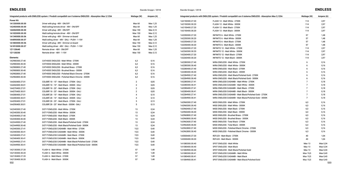 Integrated products with ENDLESS system / Prodotti compatibili con il sistema ENDLESS - Absorption Max 3,125A