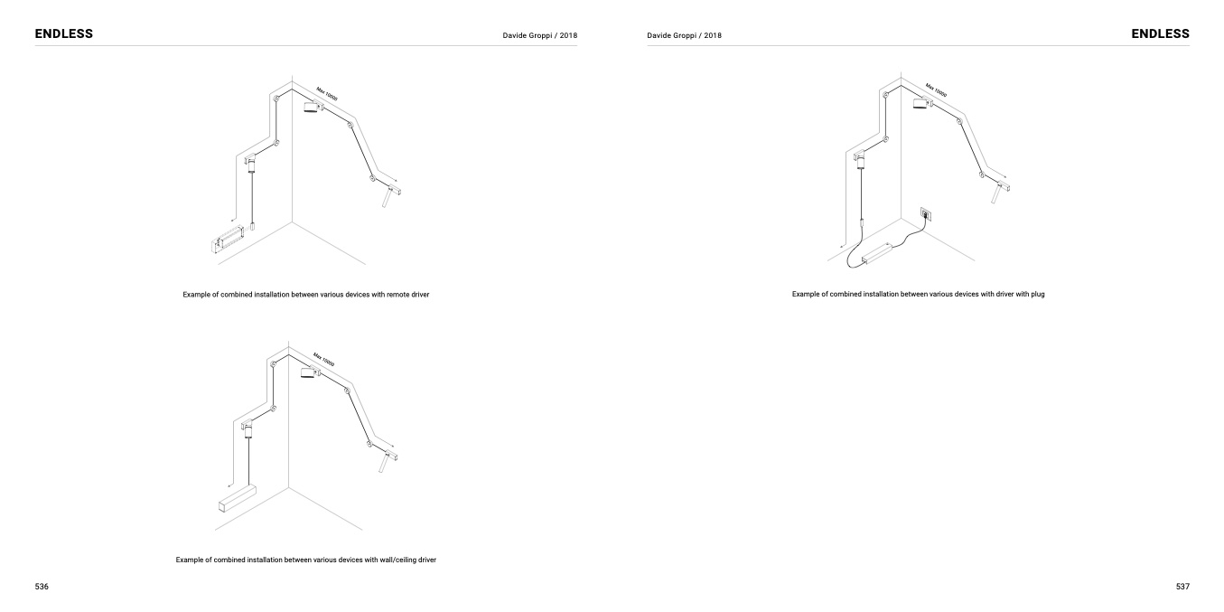 Example of combined installation between various devices with wall/ceiling driver