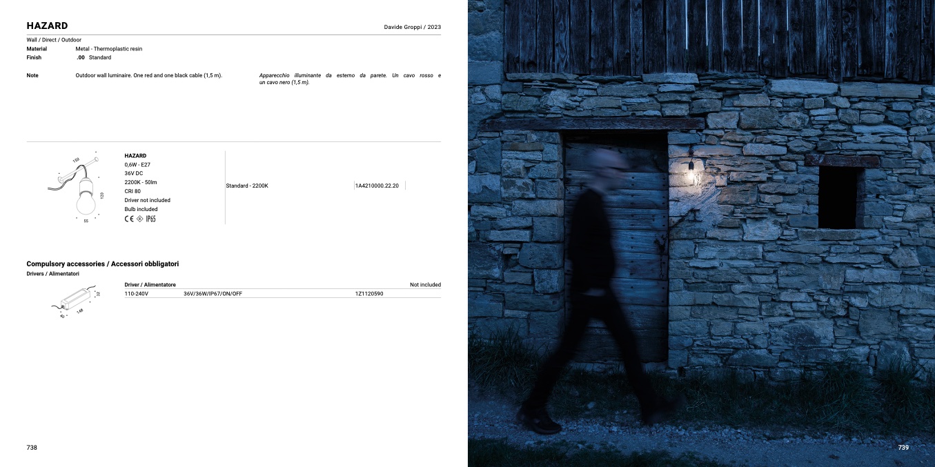 Outdoor wall luminaire. One red and one black cable (1,5 m).
