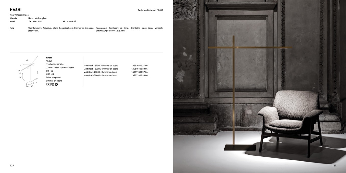 Floor luminaire. Adjustable along the vertical axis. Dimmer on the cable.