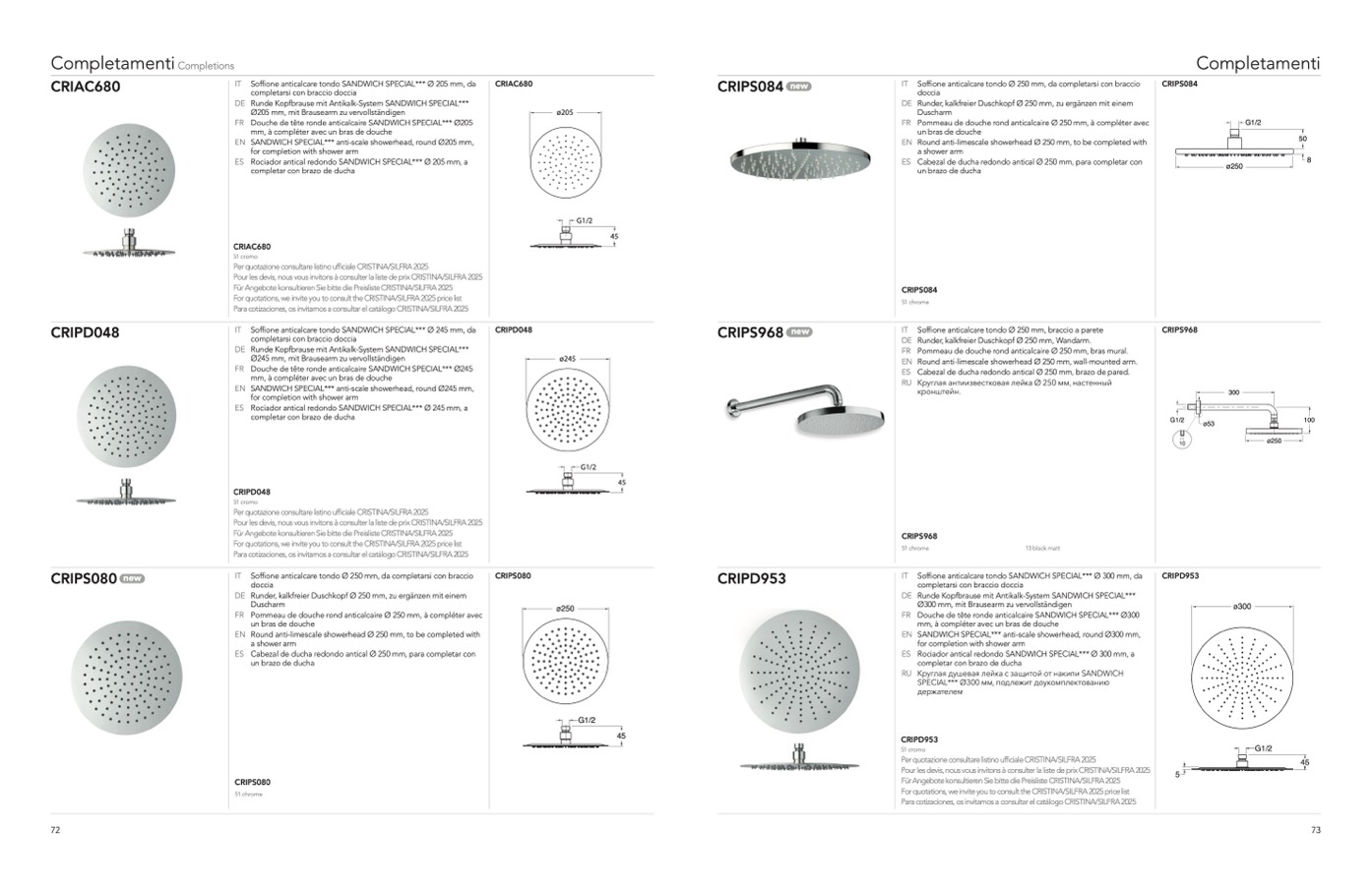 fione anticalcare tondo Ø 250 mm, da completarsi con braccio