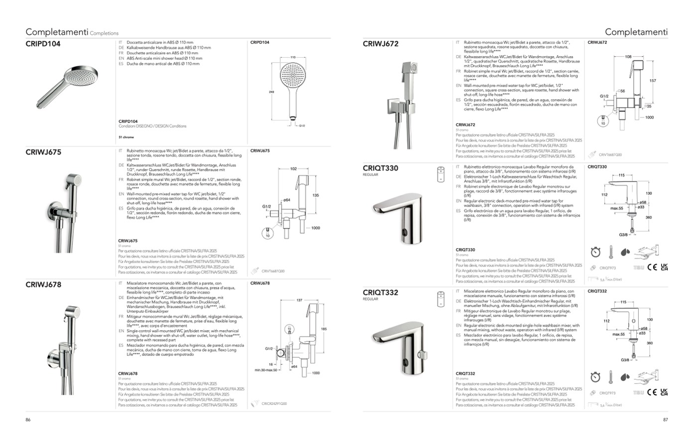 For quotations, we invite you to consult the CRISTINA/SILFRA 2025 price list