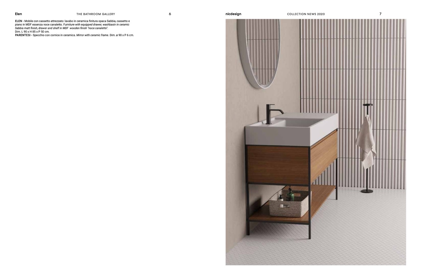Sabbia matt finish, drawer and shelf in MDF wooden finish "noce canaletto".