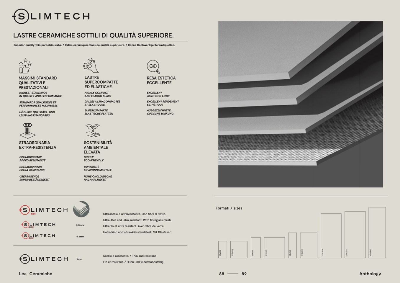 Superior quality thin porcelain slabs. / Dalles céramiques fines de qualité supérieure. / Dünne Hochwertige Keramikplatten.