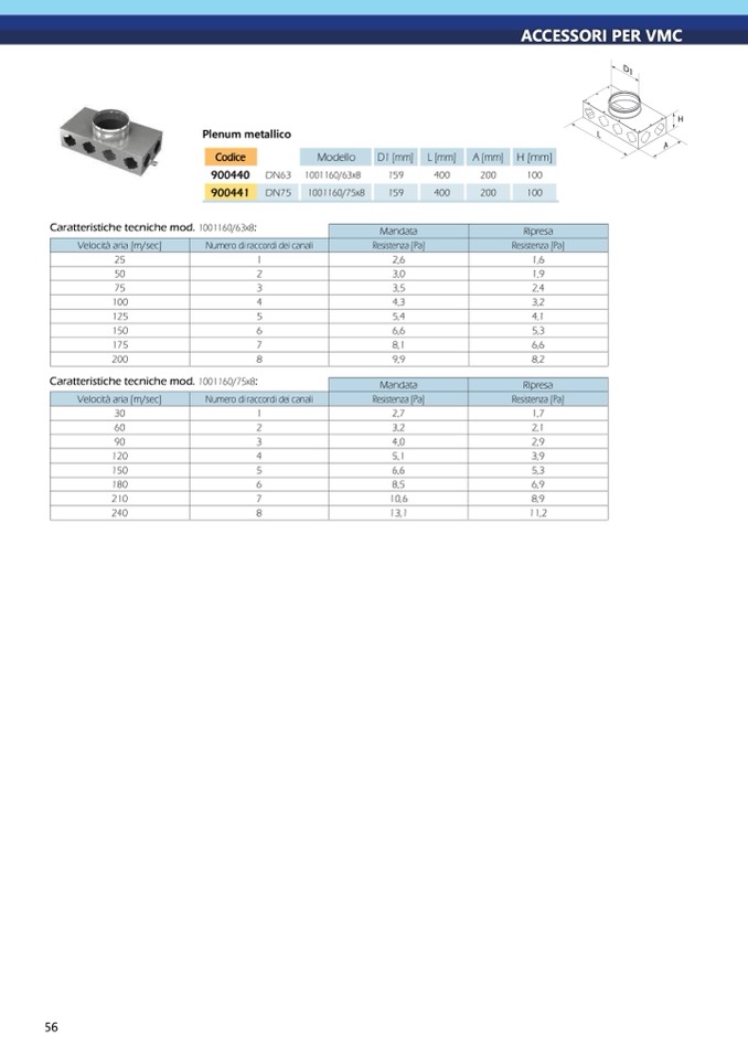 Caratteristiche tecniche mod. 1001160/75x8: