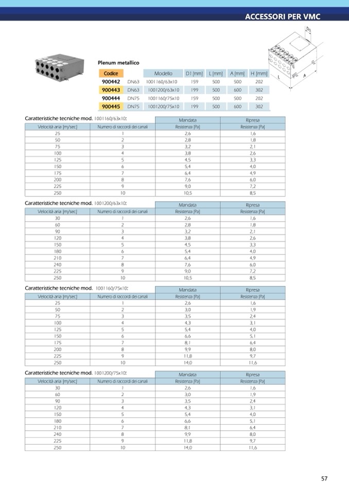 Caratteristiche tecniche mod. 1001160/75x10: