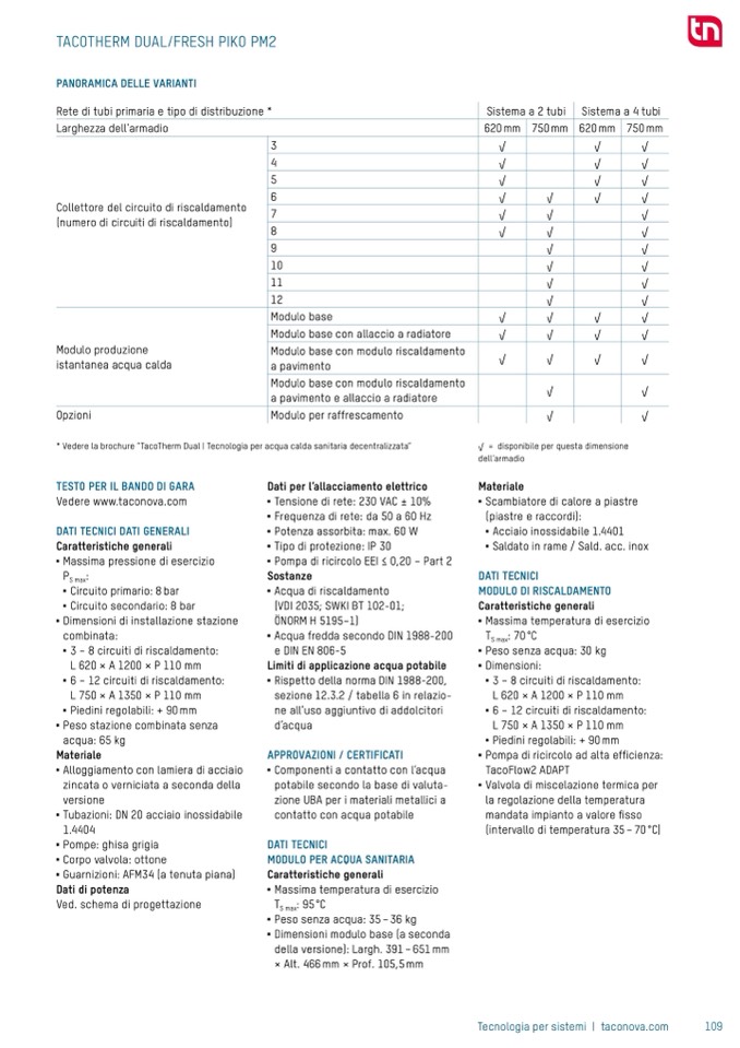 * Vedere la brochure ”TacoTherm Dual | Tecnologia per acqua calda sanitaria decentralizzata”