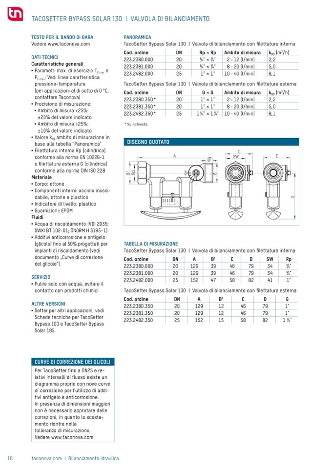 TacoSetter Bypass Solar 130 | Valvola di bilanciamento con