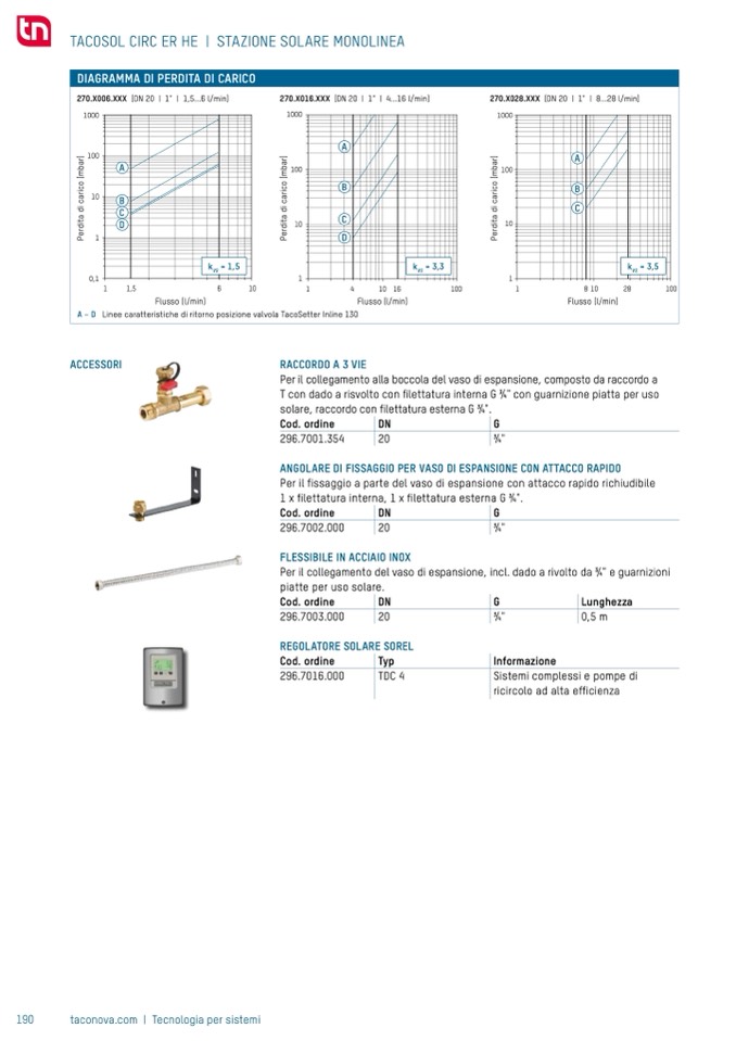 Linee caratteristiche di ritorno posizione valvola TacoSetter Inline 130