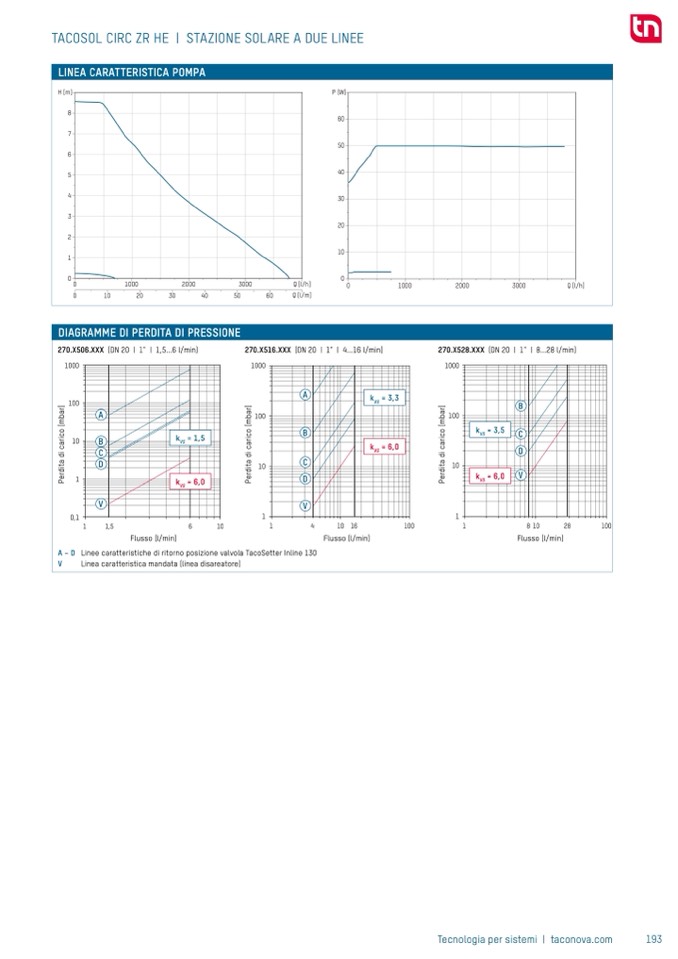 Linee caratteristiche di ritorno posizione valvola TacoSetter Inline 130