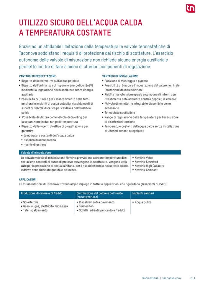 Le provate valvole di miscelazione NovaMix provvedono a creare temperature di mi-
