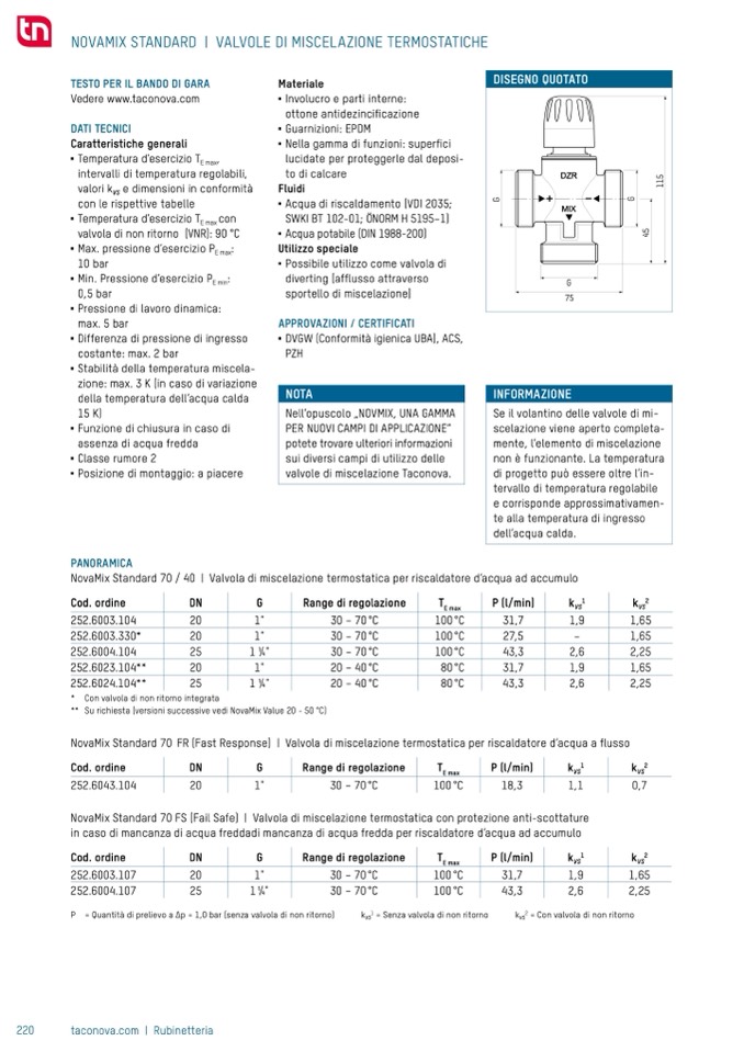 ** Su richiesta (versioni successive vedi NovaMix Value 20 50 °C)